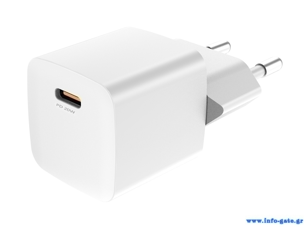 POWERTECH φορτιστής τοίχου PT-1223, USB-C, 20W, λευκός