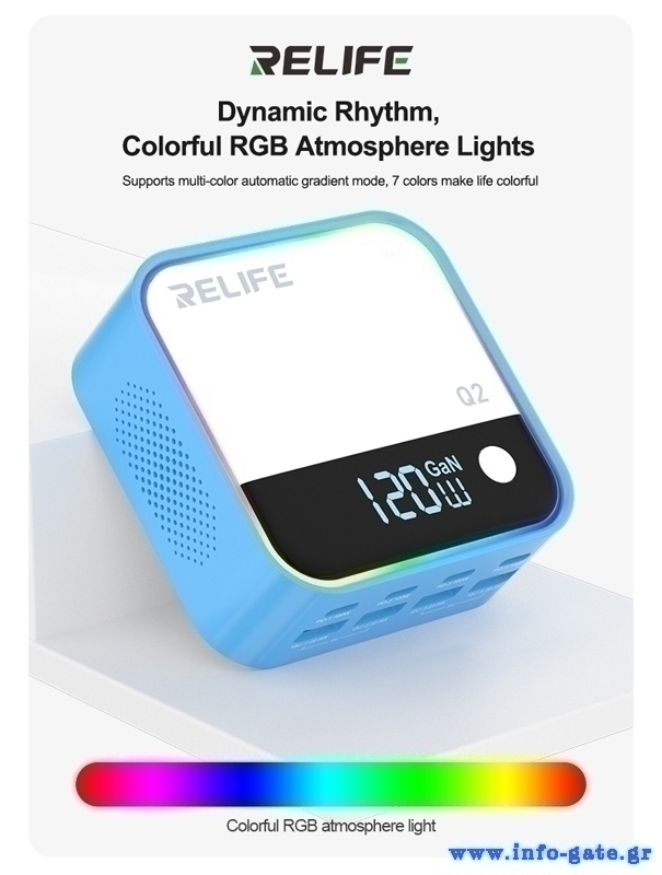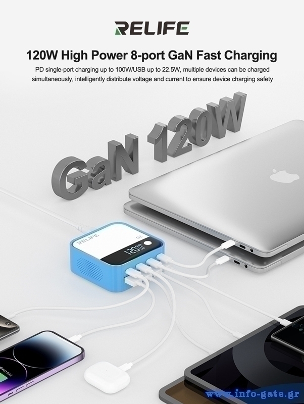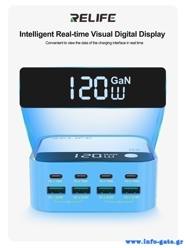 RELIFE σταθμός φόρτισης Q2, 4x USB-C & 4x USB, 120W, GaN, μπλε