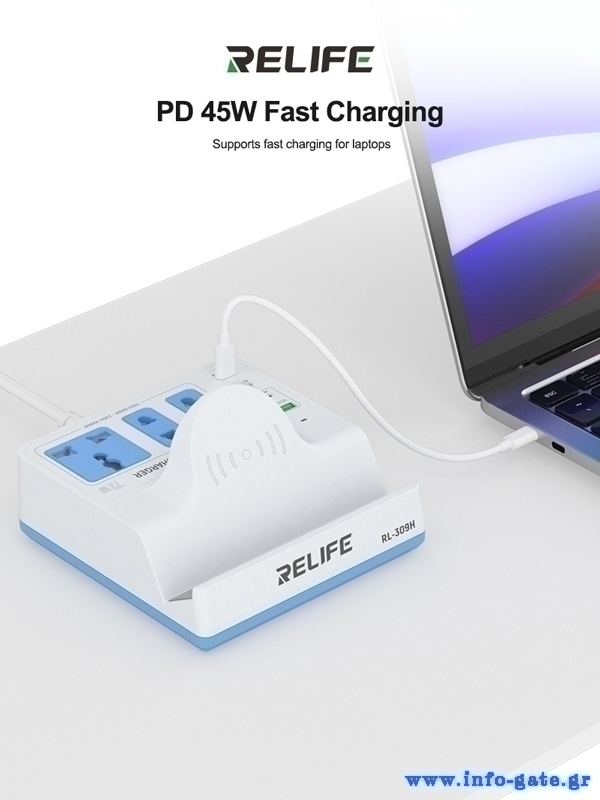 RELIFE σταθμός φόρτισης RL-309H, USB/3x USB-C/3x DC/wireless, 72W, λευκός