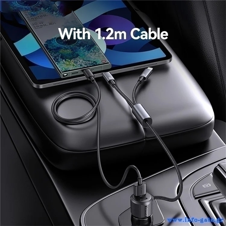 Διαθέτει 2x θύρες εξόδου (USB & USB-C) αλλά και 2 σε 1 ενσωματωμένο καλώδιο εξόδου (USB-C & Lightning) που υποστηρίζουν φόρτιση με μέγιστη συνολική απόδοση 66W.