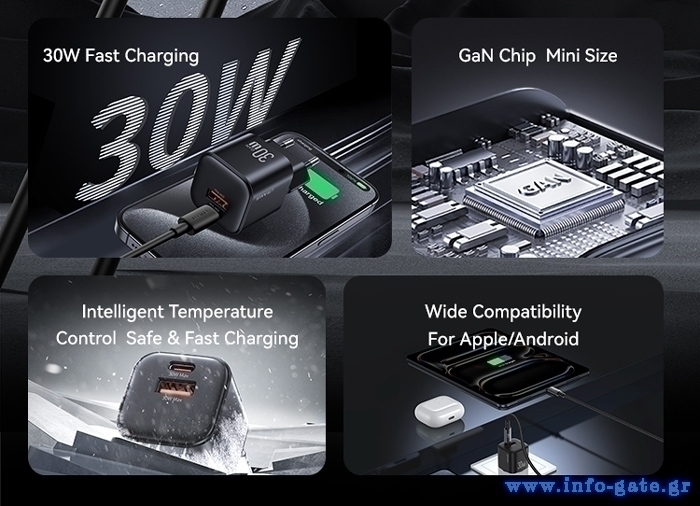 -υψηλή απόδοση φόρτισης έως 30W
