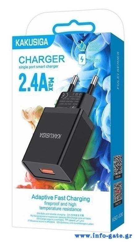 KAKUSIGA φορτιστής τοίχου KSC-930, USB, 2.4A, μαύρος