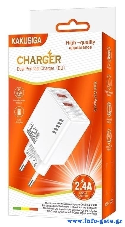 KAKUSIGA φορτιστής τοίχου KSC-1237, 2x USB, 12W, λευκός
