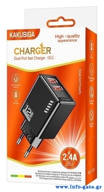 KAKUSIGA φορτιστής τοίχου KSC-1237, 2x USB, 12W, μαύρος