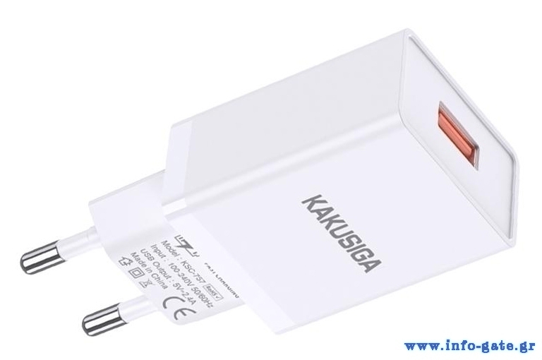 Υψηλής απόδοσης φορτιστής τοίχου της KAKUSIGA, κατασκευασμένος από ανθεκτικό υλικό και συμβατός με συσκευές που φορτίζουν μέσω θύρας USB.