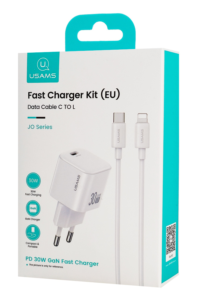 USAMS φορτιστής τοίχου CC262 με καλώδιο Lightning, 30W, GaN, λευκός