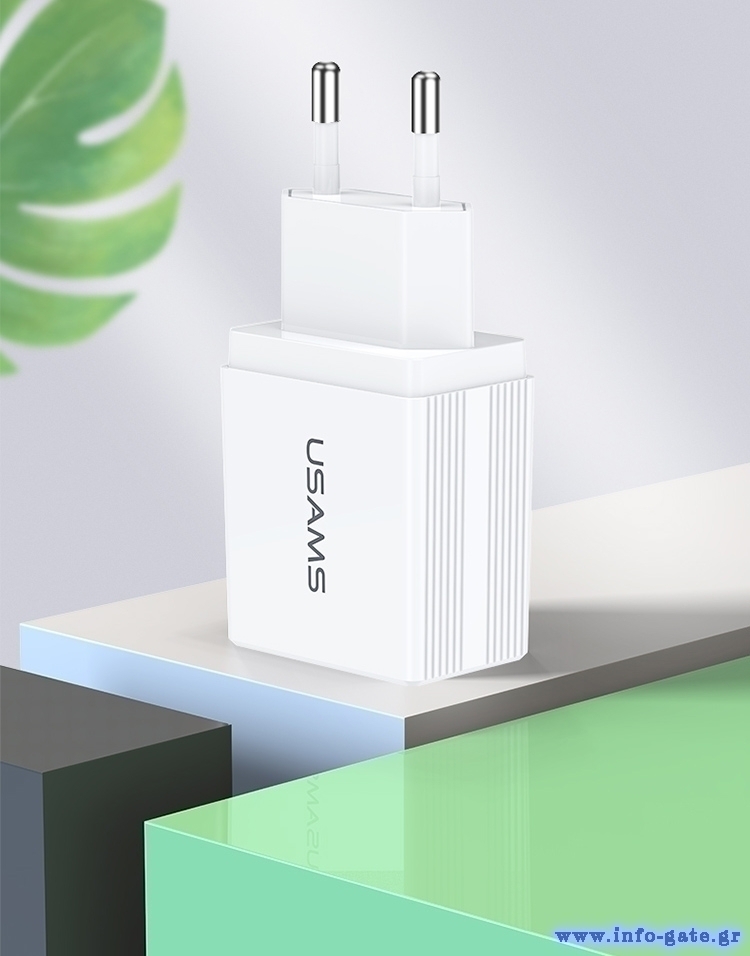 Υψηλής απόδοσης USB φορτιστής τοίχου της Usams, κατασκευασμένος από ανθεκτικό υλικό και συμβατός με όλες τις συσκευές που φορτίζουν μέσω USB θύρας.
