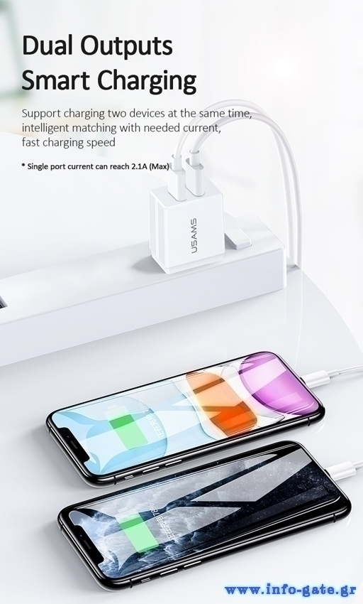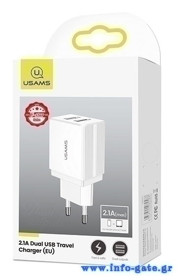USAMS φορτιστής τοίχου T24 US-CC090, 2x USB, 2.1A, λευκός
