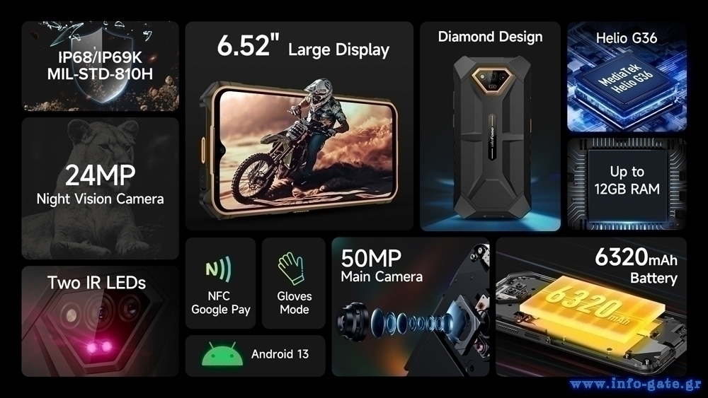 Στιβαρό και αδιάβροχο (IP68/IP69K) smartphone, με επιβλητικό design και σκελετό υψηλής ποιότητας, ανθεκτικό σε σκληρή χρήση. Διαθέτει μεγάλη οθόνη 6.52" HD+ και οκταπύρηνο επεξεργαστή με συχνότητα λειτουργίας στα 2.2GHz.