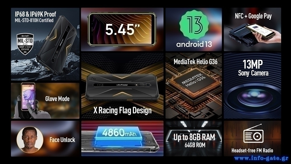 Στιβαρό και αδιάβροχο (IP68/IP69K) smartphone, με επιβλητικό design και σκελετό υψηλής ποιότητας, ανθεκτικό σε σκληρή χρήση. Διαθέτει μεγάλη οθόνη 5.45" HD+ και οκταπύρηνο επεξεργαστή με συχνότητα λειτουργίας στα 2.2GHz.