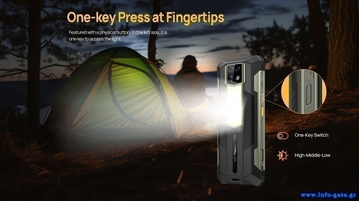 Διαθέτει ισχυρό φακό 1000 lumens, εξοπλισμένο με 510 LEDs, ικανό να φωτίσει μεγάλες περιοχές γρήγορα με το πάτημα ενός κουμπιού.