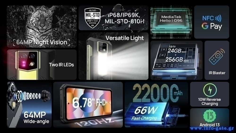 Με πιστοποίηση IP68/IP69K και πρότυπο MIL-STD-810H, το Armor 24 είναι σχεδιασμένο για να αντέχει σε ακραίες συνθήκες χρήσης και περιβάλλοντα.