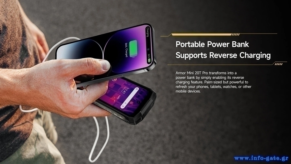 Με βολικό μέγεθος τσέπης, πιστοποίηση IP68/IP69K και πρότυπο MIL-STD-810H, το Armor Mini 20T Pro είναι σχεδιασμένο για να αντέχει σε ακραίες συνθήκες χρήσης και περιβάλλοντα.