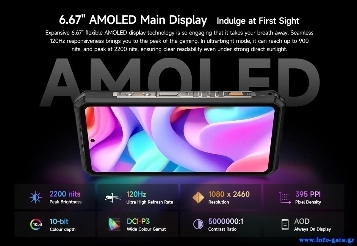 -Μπροστινή οθόνη: 6.67" AMOLED, 2400x1080 FHD+, 20:9, 395 ppi, 120 Hz, Corning Gorilla Glass Victus