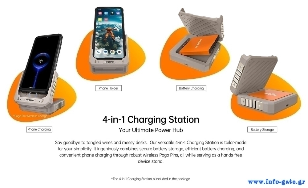 Η συσκευή διαθέτει 2 αφαιρούμενες μπαταρίες για αδιάκοπη χρήση, καθώς και βάση φόρτισης που επιτρέπει την ταυτόχρονη φόρτιση του smartphone και της δεύτερης μπαταρίας.
