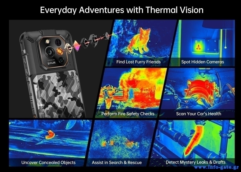 Το Xever 7 Pro ενσωματώνει αισθητήρα θερμικής εικόνας FLIR που σας επιτρέπει να ανιχνεύετε με θερμική εικόνα, θερμοκρασίες από -10 °C έως 450 °C.