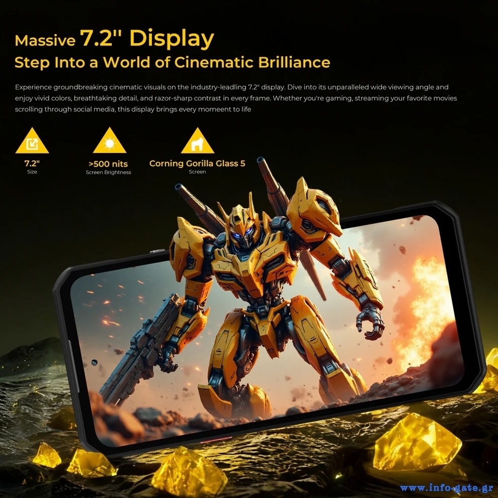 Στιβαρό και αδιάβροχο (IP68/IP69K/MIL-STD-810H) smartphone, με επιβλητικό design και σκελετό υψηλής ποιότητας, ανθεκτικό σε σκληρή χρήση.