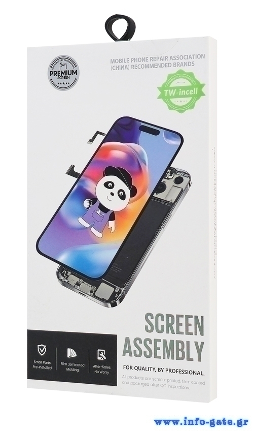TW INCELL LCD για iPhone 14 Pro Max, camera-sensor ring, earmesh, μαύρη