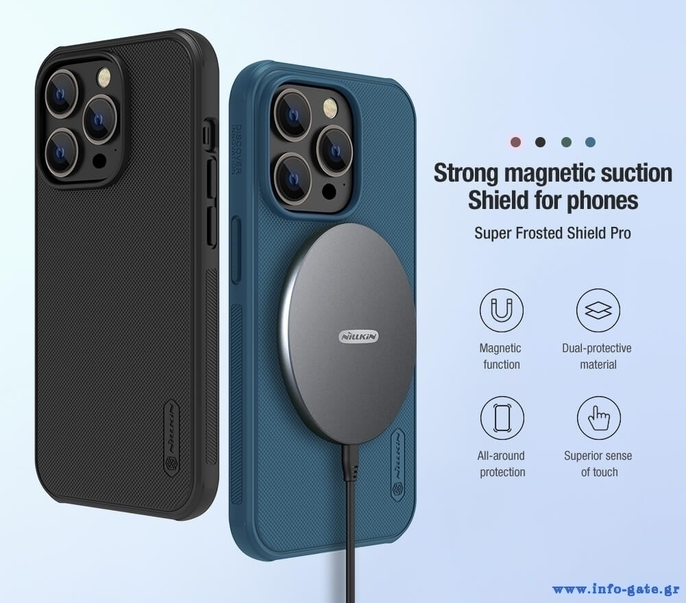 Η σειρά Super Frosted Shield Pro Magnetic της Nillkin χαρακτηρίζεται από το απλό design και το σκληρό υλικό με την ανάγλυφη, αντιολισθητική επιφάνεια, που προστατεύει απόλυτα το smartphone σας.