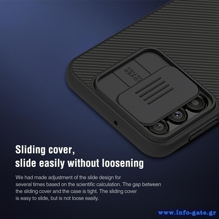 Η σειρά CamShield της Nillkin χαρακτηρίζεται από την ενισχυμένη προστασία που προσφέρει το σκληρό υλικό κατασκευής της με την ανάγλυφη επιφάνεια αλλά και την έξτρα προστασία των καμερών και της ιδιωτικότητας σας, χάρη στο συρόμενο καπάκι της. Η επιφάνεια της είναι αντιολισθητική, έχει ενισχυμένα άκρα, δεν χαράσσεται και δεν κάνει δαχτυλιές.