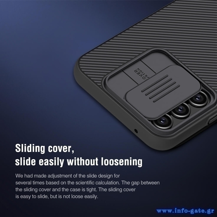 Η σειρά CamShield της Nillkin χαρακτηρίζεται από την ενισχυμένη προστασία που προσφέρει το σκληρό υλικό κατασκευής της με την ανάγλυφη επιφάνεια αλλά και την έξτρα προστασία των καμερών και της ιδιωτικότητας σας, χάρη στο συρόμενο καπάκι της. Η επιφάνεια της είναι αντιολισθητική, έχει ενισχυμένα άκρα, δεν χαράσσεται και δεν κάνει δαχτυλιές.