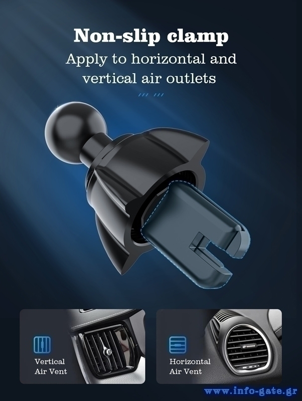 Ασύρματος φορτιστής και βάση αυτοκινήτου με στήριξη σε οριζόντιους ή κάθετους αεραγωγούς του αυτοκινήτου.