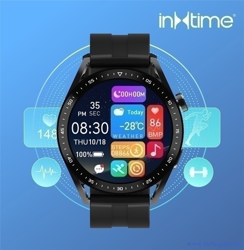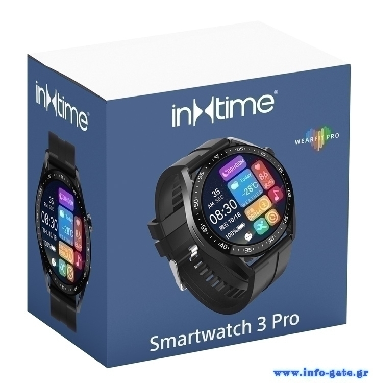 INTIME smartwatch 3 Pro, 1.28", IP67, heart rate, ηχείο & mic, μαύρο