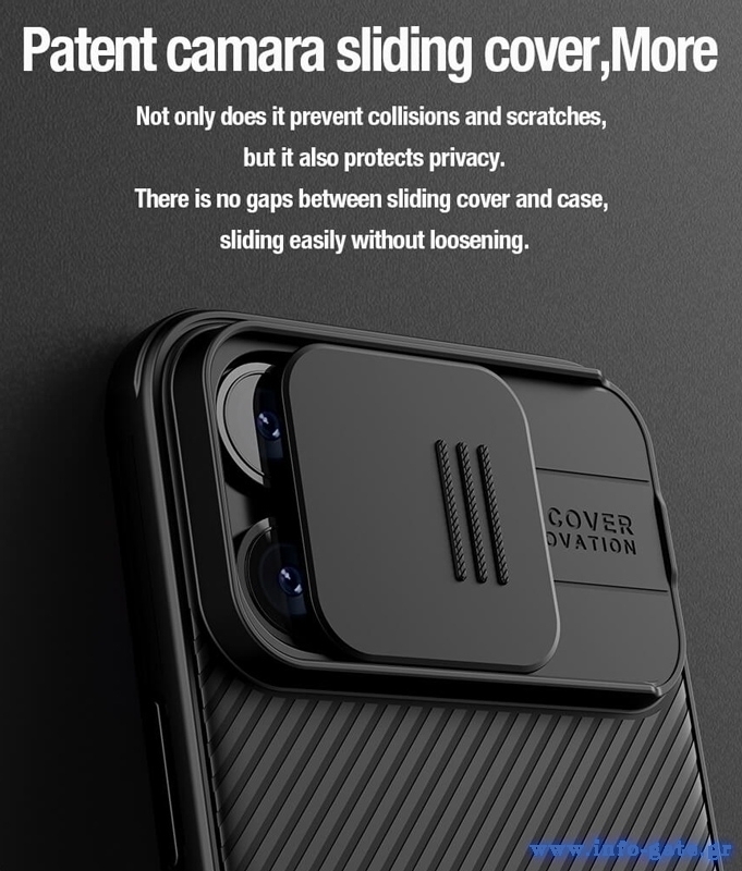Η θήκη της σειράς CamShield Pro Magnetic της Nillkin χαρακτηρίζεται από την ενισχυμένη προστασία που προσφέρει, το σκληρό υλικό κατασκευής της με την ανάγλυφη επιφάνεια, αλλά και την έξτρα προστασία των καμερών και της ιδιωτικότητας σας, χάρη στο συρόμενο καπάκι της.