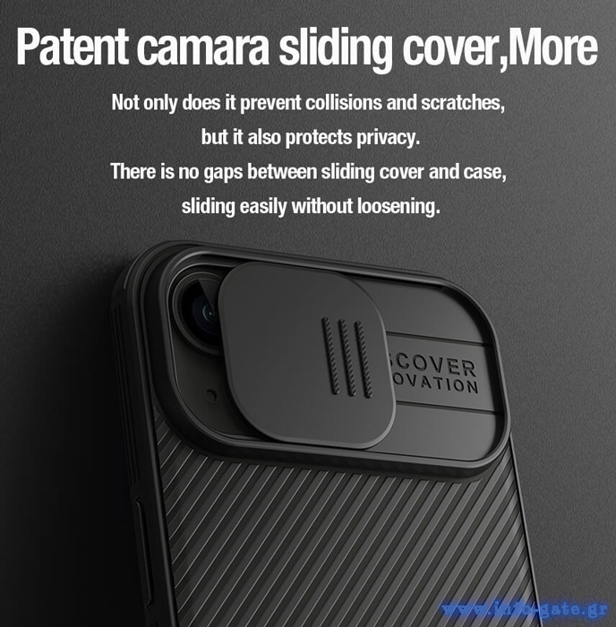 Η θήκη της σειράς CamShield Pro Magnetic της Nillkin χαρακτηρίζεται από την ενισχυμένη προστασία που προσφέρει, το σκληρό υλικό κατασκευής της με την ανάγλυφη επιφάνεια, αλλά και την έξτρα προστασία των καμερών και της ιδιωτικότητας σας, χάρη στο συρόμενο καπάκι της.