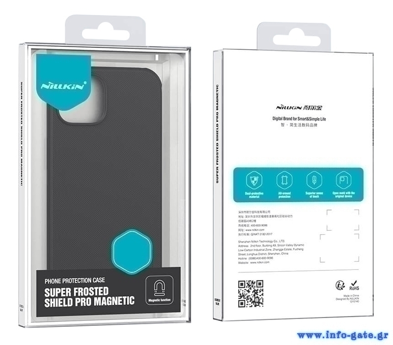 Η θήκη της σειράς Super Frosted Shield Pro Magnetic της Nillkin χαρακτηρίζεται από το απλό design και το σκληρό υλικό με την ανάγλυφη, αντιολισθητική επιφάνεια, που προστατεύει απόλυτα το smartphone σας.
