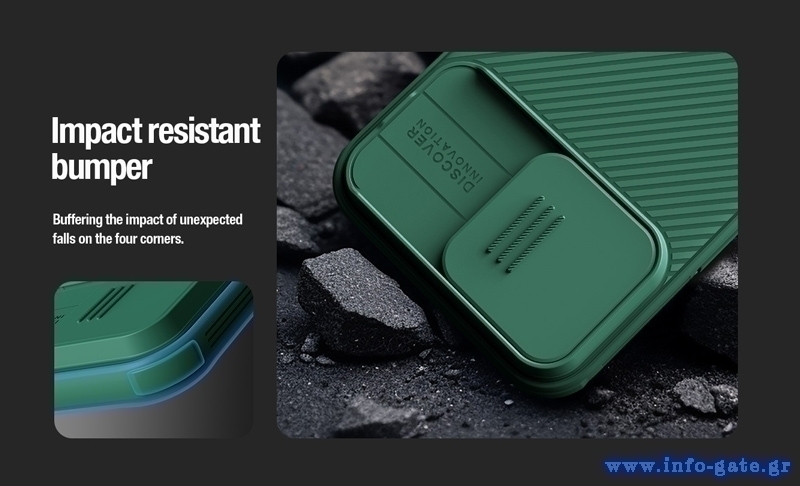 Η θήκη της σειράς CamShield Pro της Nillkin χαρακτηρίζεται από την ενισχυμένη προστασία που προσφέρει, το σκληρό υλικό κατασκευής της με την ανάγλυφη επιφάνεια, αλλά και την έξτρα προστασία των καμερών και της ιδιωτικότητας σας, χάρη στο συρόμενο καπάκι της.