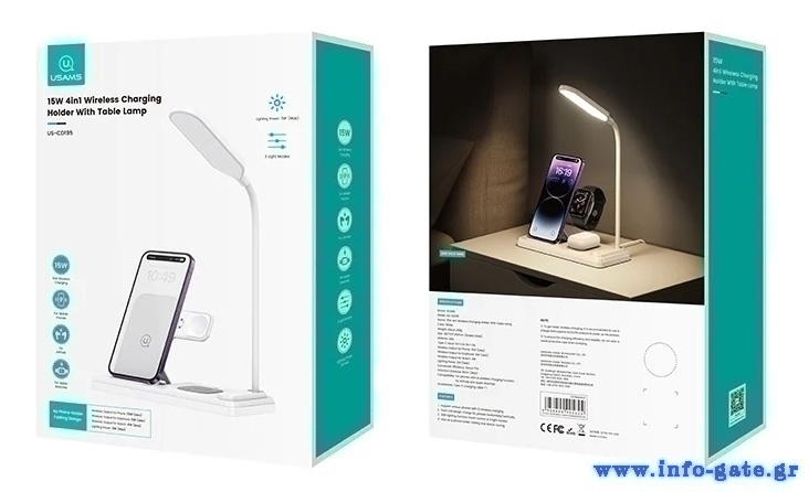 USAMS ασύρματος φορτιστής US-CD195 με φωτιστικό, 4 σε 1, 15W, λευκός