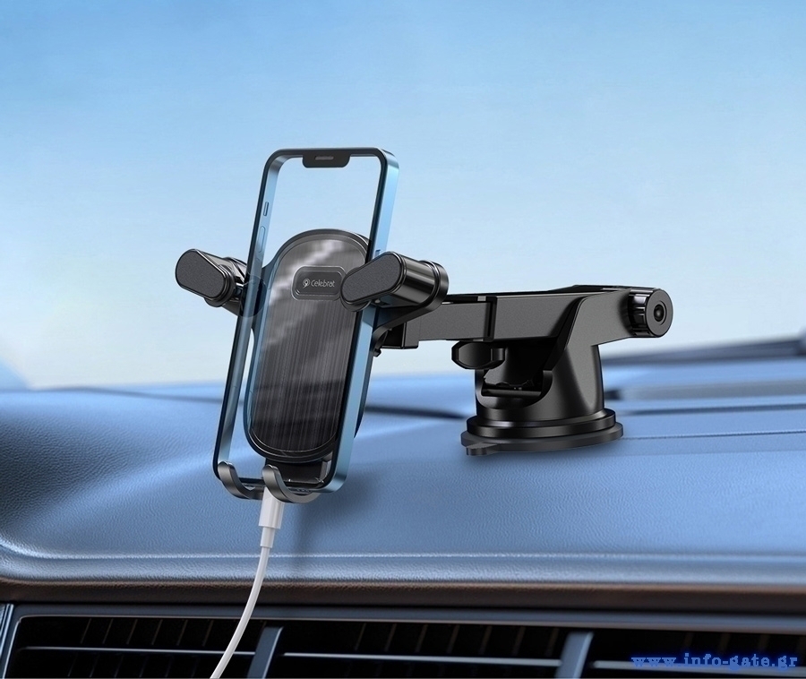 Βάση αυτοκινήτου για smartphone με στήριξη σε οποιαδήποτε επίπεδη επιφάνεια ή σε αεραγωγούς του αυτοκινήτου.