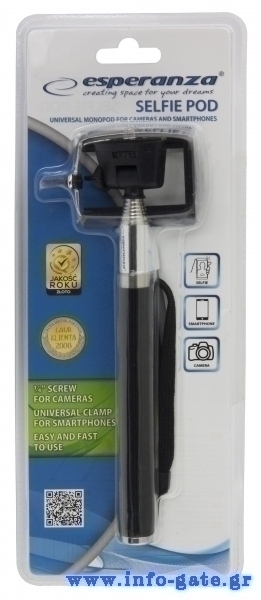 Πτυσσόμενο selfie stick της ESPERANZA ιδανικό για selfie εγγραφή βίντεο και λήψη φωτογραφιών από smartphone ή action camera.