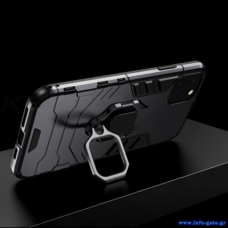Η Powertech θήκη Ring Armor είναι κατασκευασμένη από σιλικόνη υψηλής αντοχής με ειδική σχεδίαση για την απορρόφηση κραδασμών. Στο πίσω μέρος διαθέτει δακτύλιο για χρήση ως σταντ, ενώ, ενσωματώνει και μεταλλική πλάκα που επιτρέπει τον μαγνητισμό της θήκης από μαγνητικές βάσεις. Η στιβαρή κατασκευή την καθιστά ιδανική για προστασία από πτώσεις και χτυπήματα ενώ παράλληλα το μοντέρνο στυλ εντυπωσιάζει.