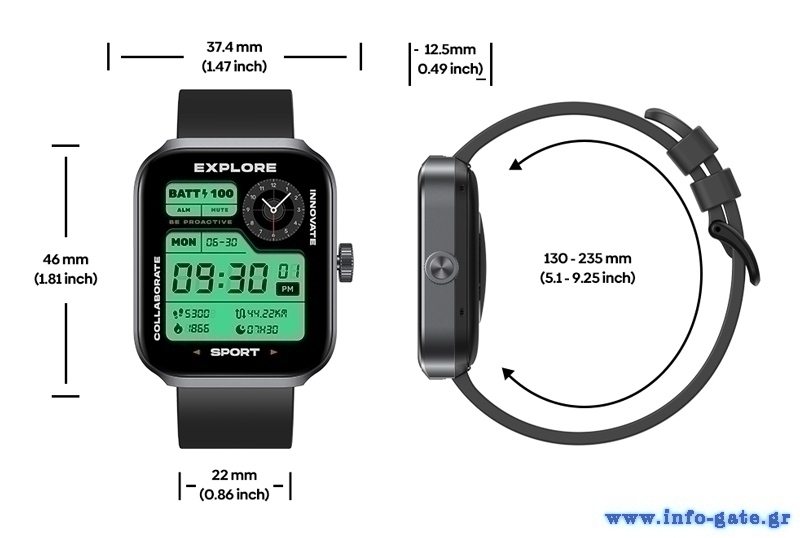 -Λουράκι: Υλικό: Σιλικόνη, Πλάτος: 22mm, συμβατό με standard 22mm quick-release λουράκια