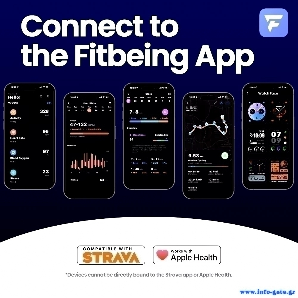 Συνδέεται μέσω Bluetooth και της εφαρμογής Fitbeing με το smartphone σου για να λαμβάνεις ειδοποιήσεις μηνυμάτων, κλήσεων και εφαρμογών.
