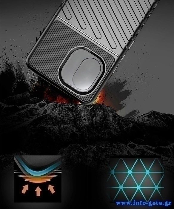 H θήκη Thunder κατασκευάζεται από ανθεκτικό TPU το οποίο περιβάλλει με ασφάλεια τη συσκευή, παρέχοντας άριστη προστασία και κράτημα ενώ διατηρεί μινιμαλιστική εμφάνιση. Το υπερυψωμένο της πλαίσιο περιμετρικά προστατεύει την οθόνη σε πιθανές πτώσεις.