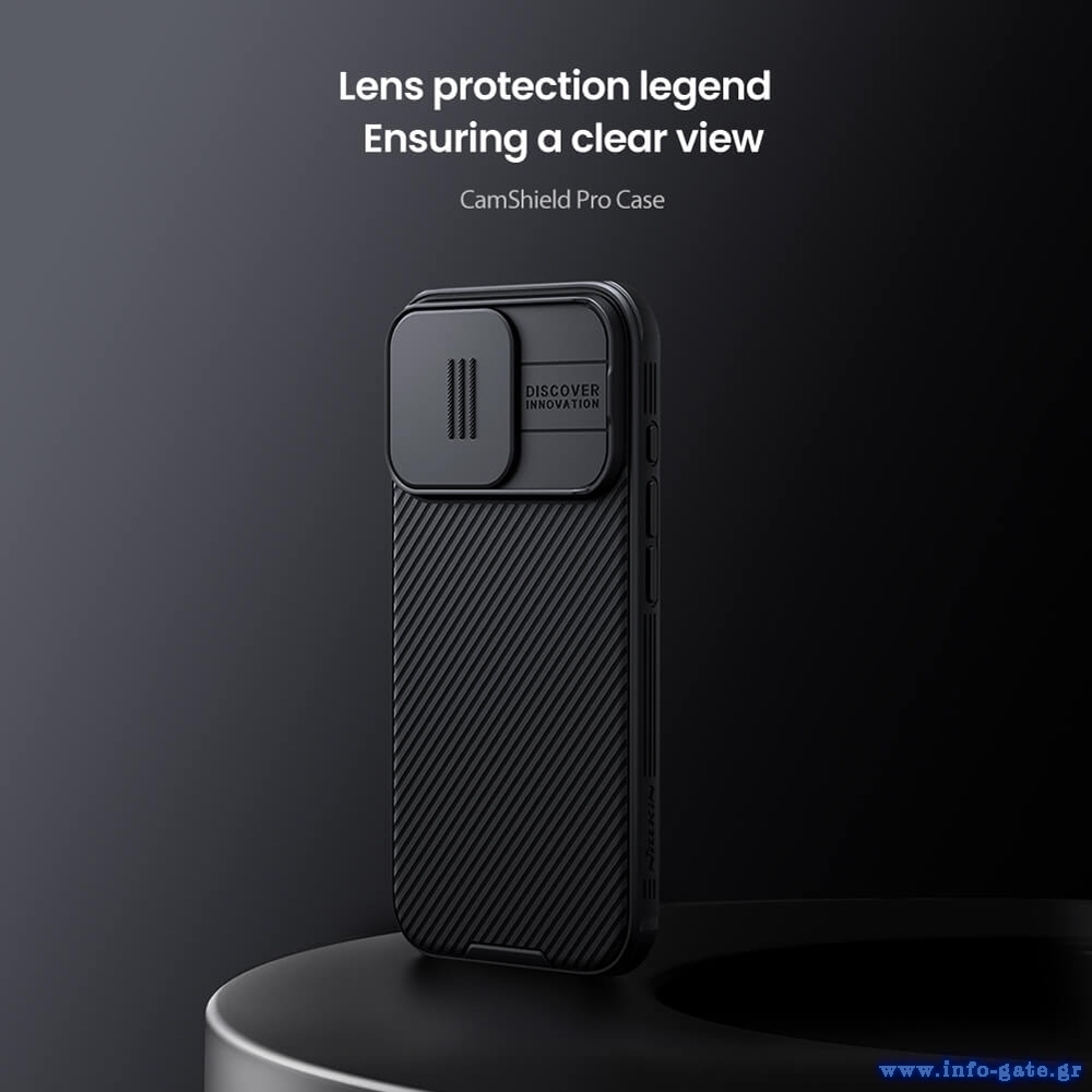 Η θήκη της σειράς CamShield Pro της Nillkin χαρακτηρίζεται από την ενισχυμένη προστασία που προσφέρει, το σκληρό υλικό κατασκευής της με την ανάγλυφη επιφάνεια, αλλά και την έξτρα προστασία των καμερών και της ιδιωτικότητας σας, χάρη στο συρόμενο καπάκι της.
