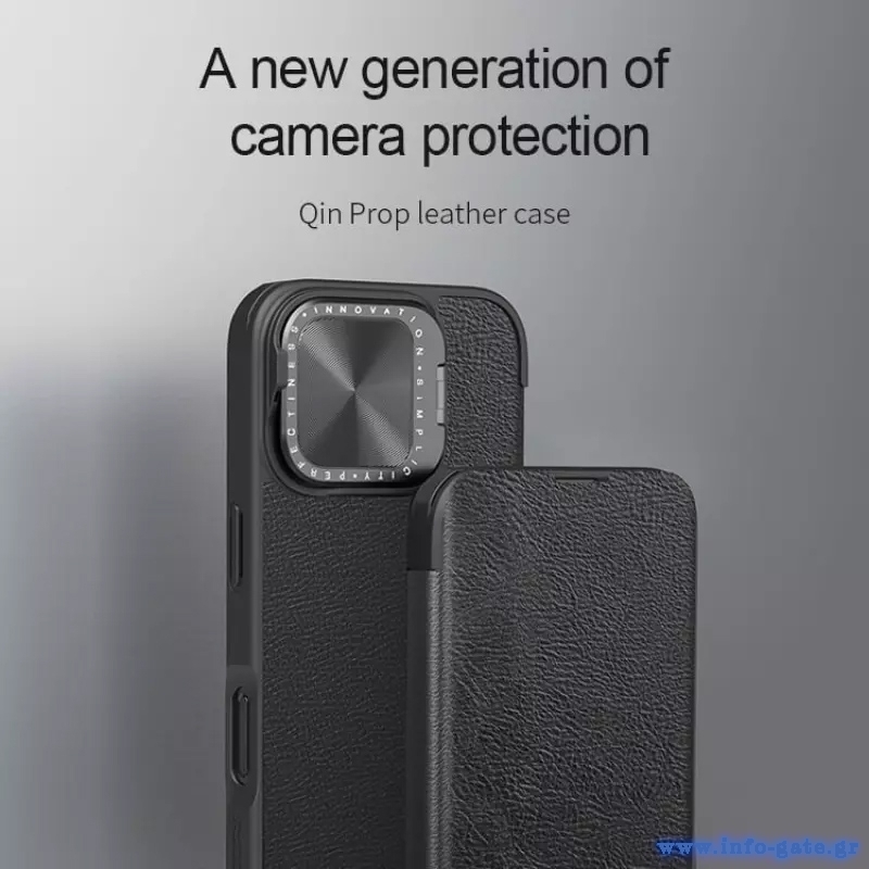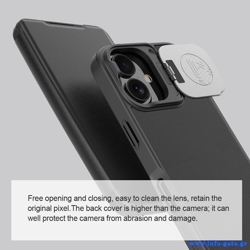 NILLKIN θήκη Qin Prop Leather για iPhone 16, δερμάτινη, μαύρη