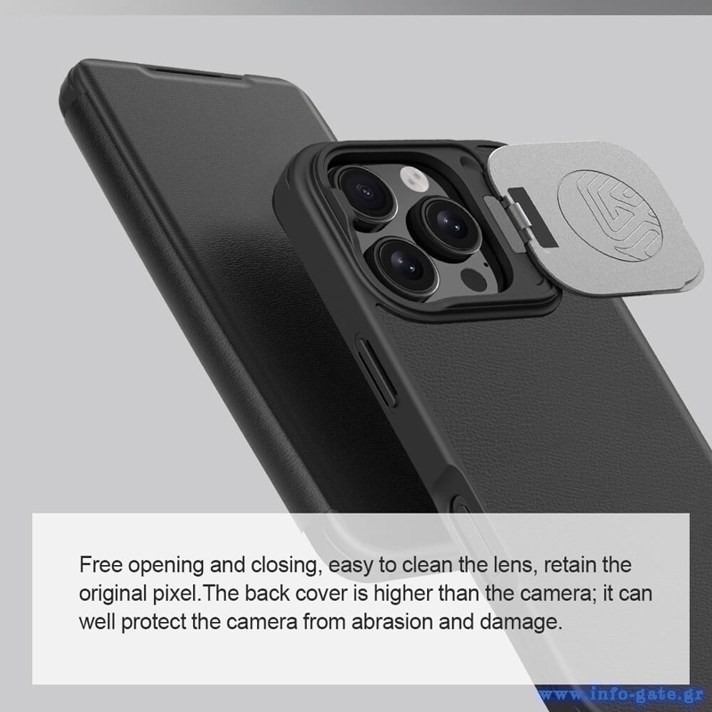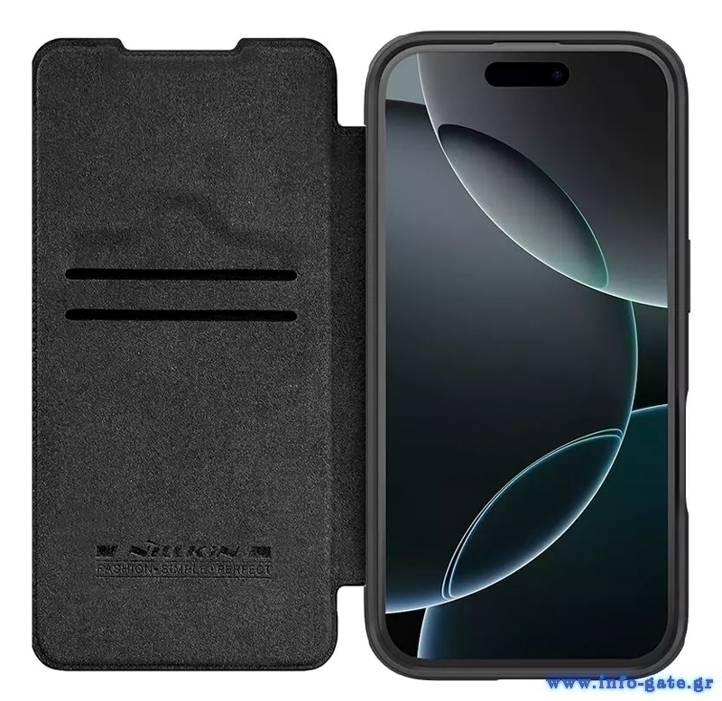 NILLKIN θήκη Qin Prop Leather για iPhone 16 Pro, δερμάτινη, μαύρη