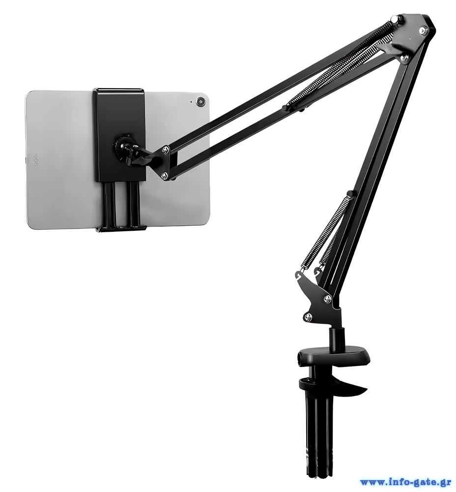 Διαθέτει ιδιαίτερα μακρύ βραχίονα ο οποίος μπορεί να περιστραφεί κατά 360°. Ο βραχίονας ρυθμίζεται σε 2 σημεία, ώστε να βρείτε το ιδανικό ύψος προβολής, ενώ μπορεί να περιστραφεί ή να αλλάξει γωνία κλίσης και το σημείο συγκράτησης της συσκευής.