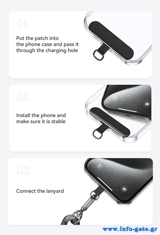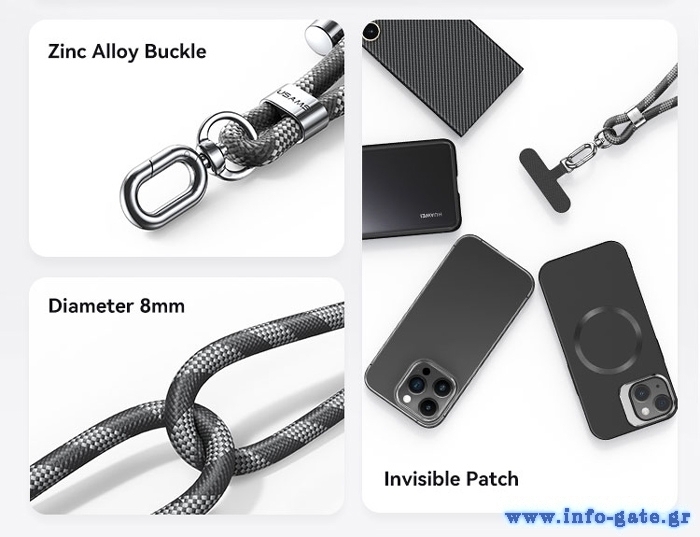 Universal κορδόνι για το κρέμασμα του κινητού σας από τον λαιμό. Προσφέρει επιπλέον προστασία όταν κρατάτε το κινητό σας στα χέρια, καθώς αποτρέπει την πτώση του στο έδαφος.