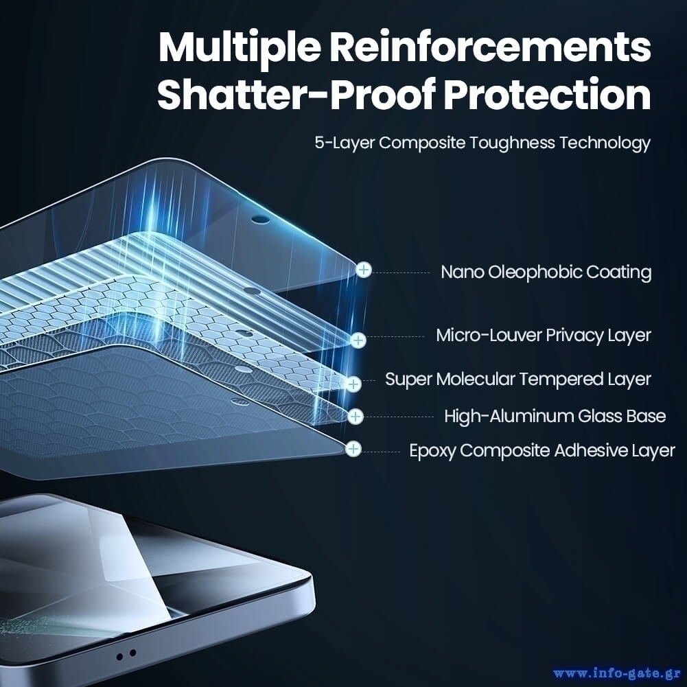 Τα tempered glass της σειράς Guardian Full Coverage Privacy καλύπτουν όλη την οθόνη και την από γρατζουνιές και γδαρσίματα. Ενισχύουν την ιδιωτικότητα σας, καθώς αποκρύπτουν το περιεχόμενο της συσκευής από πλάγια προβολή. Έχουν τέλεια εφαρμογή στην οθόνη, είναι εξαιρετικά διάφανα, με καμπυλωμένο φινίρισμα 2.5D και ελαιοφοβική επίστρωση η οποία απωθεί τις δαχτυλιές. Υποστηρίζουν τεχνολογία anti-burst για την αποφυγή εξάπλωσης των θραυσμάτων σε περίπτωση σπασίματος.