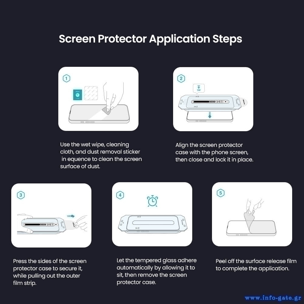 Στη συσκευασία συμπεριλαμβάνεται βολικό και εύκολο στη χρήση, πλαίσιο ευθυγράμμισης, που σας επιτρέπει να προσαρμόσετε με ακρίβεια το tempered glass πάνω στην οθόνη, εξαλείφοντας την πιθανότητα λάθους.