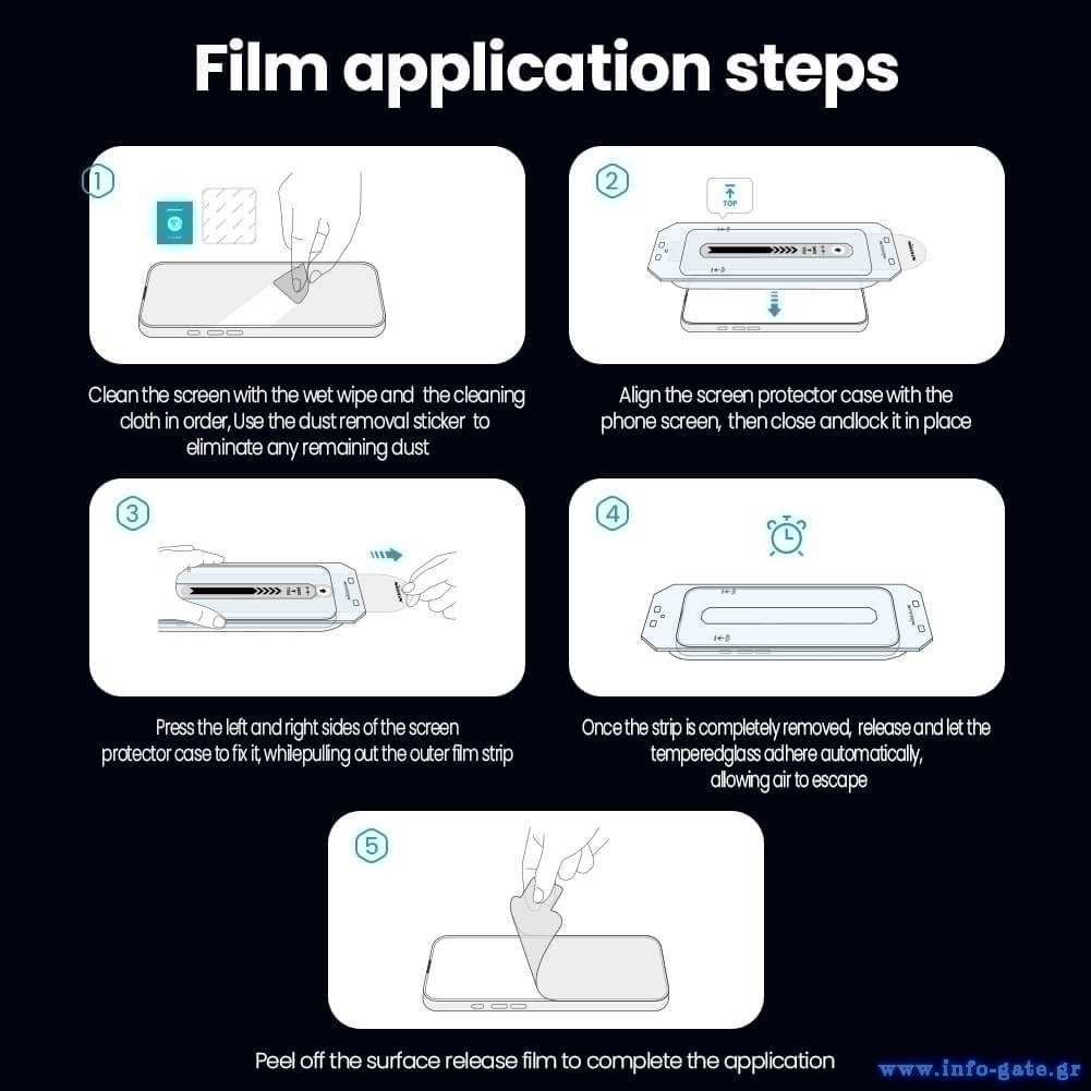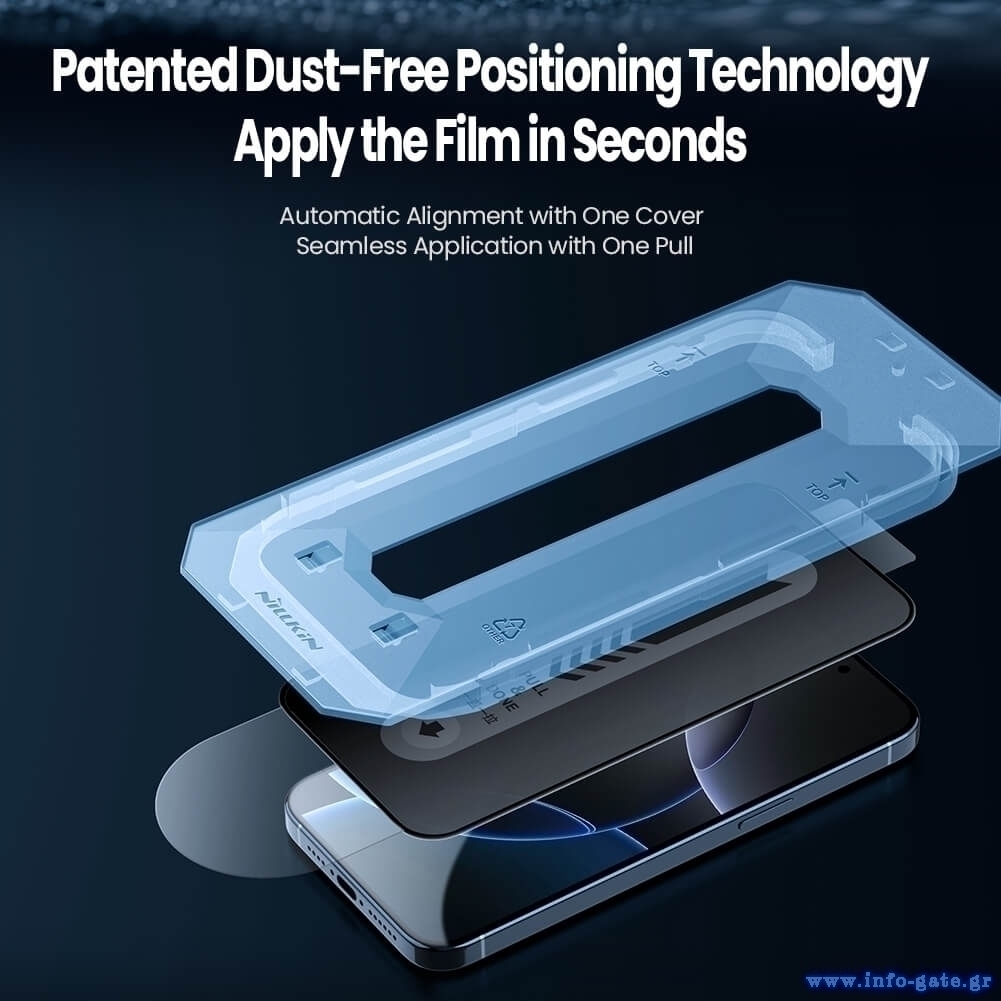 Στη συσκευασία συμπεριλαμβάνεται βολικό και εύκολο στη χρήση, πλαίσιο ευθυγράμμισης, που σας επιτρέπει να προσαρμόσετε με ακρίβεια το tempered glass πάνω στην οθόνη, εξαλείφοντας την πιθανότητα λάθους.