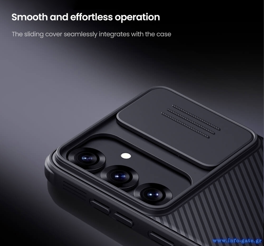 Η θήκη της σειράς CamShield Pro της Nillkin χαρακτηρίζεται από την ενισχυμένη προστασία που προσφέρει, το σκληρό υλικό κατασκευής της με την ανάγλυφη επιφάνεια, αλλά και την έξτρα προστασία των καμερών και της ιδιωτικότητας σας, χάρη στο συρόμενο καπάκι της.