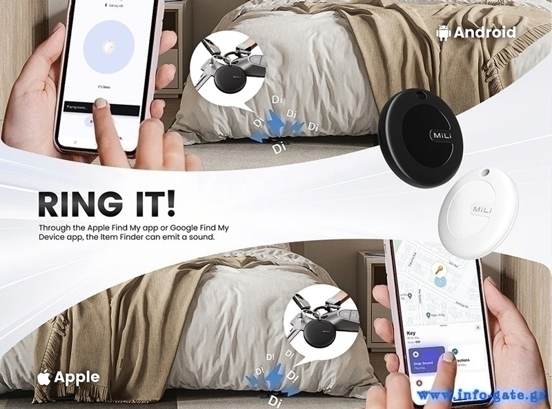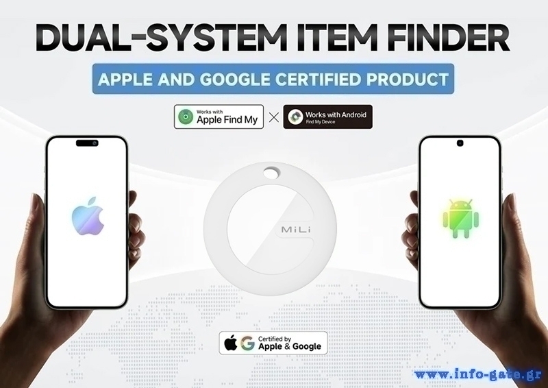 Είναι συμβατό με iOS και Android συσκευές και λειτουργεί με την εφαρμογή Apple Find My και Google Find My Device.