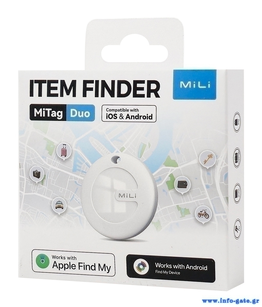 MILI smart tag MiTag Duo για iOS & Android συσκευές, Bluetooth tracker, λευκό