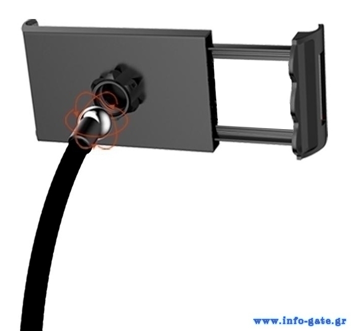 Είναι περιστρεφόμενη κατά 360° και διαθέτει εύκαμπτο μεταλλικό βραχίονα με λαστιχένια επένδυση για εύκολη ρύθμιση της γωνίας κλίσης